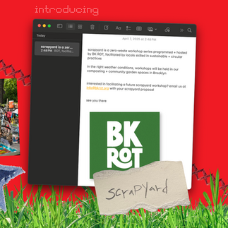 scrapyard is a zero-waste workshop series programmed + hosted by BK ROT, facilitated by locals skilled in sustainable + circular practices